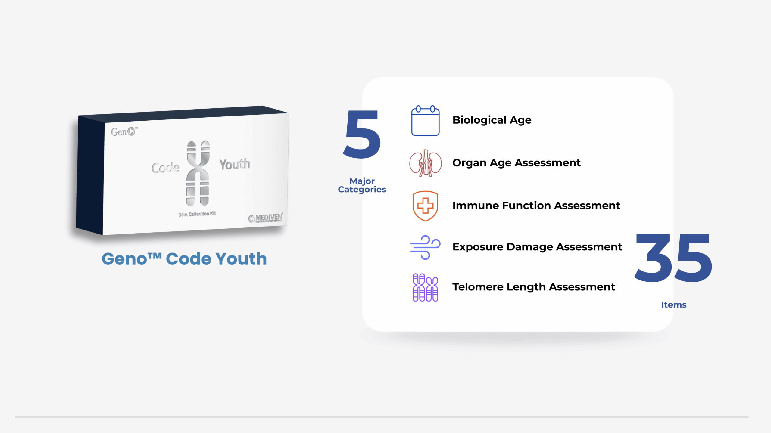 This insight empowers you to make targeted lifestyle adjustments that can support healthy aging, vitality, and long-term wellness. With Code Youth, you gain actionable guidance to optimize your genes’ potential and embrace a healthier, more youthful life—scientifically personalized, just for you.